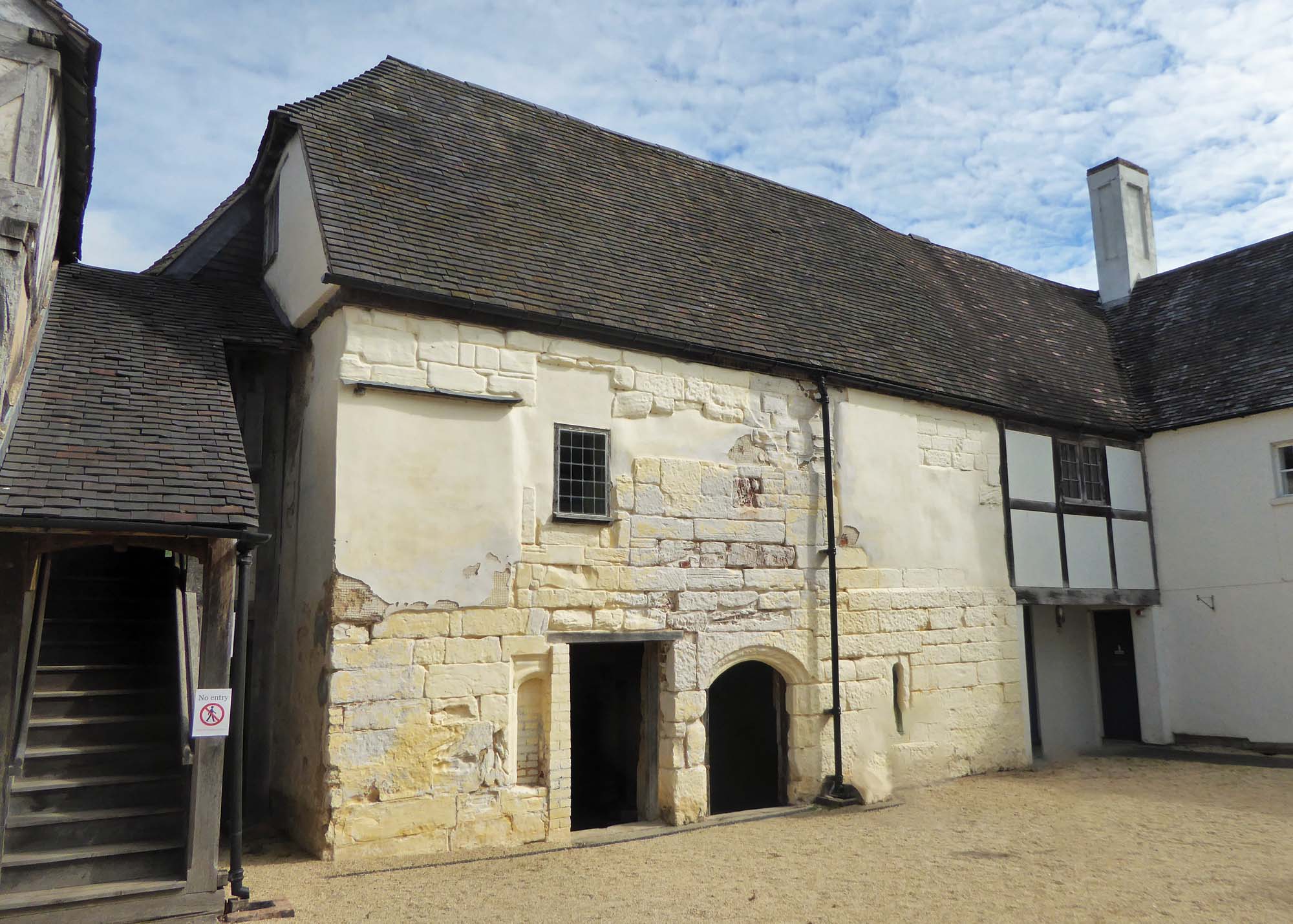 We commenced our visit of the Middleton Hall buildings with the medieval Stone Building, the oldest domestic building in Warwickshire, dating back to 1285. Most of the beams in the unusual barrel-vaulted roof are original.
